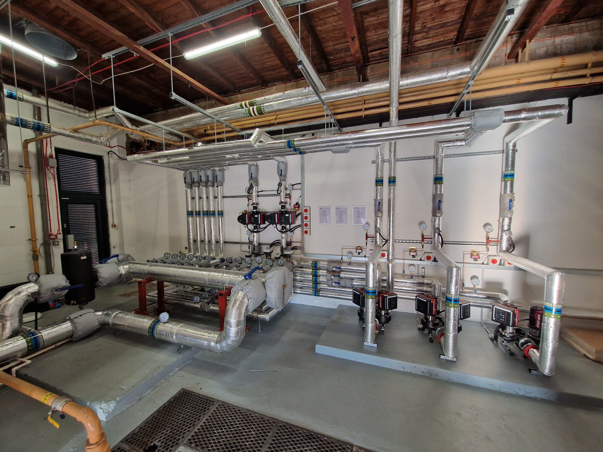 - Foil-faced mineral fibre with 40mm thickness to new heating pipework in the plant room.